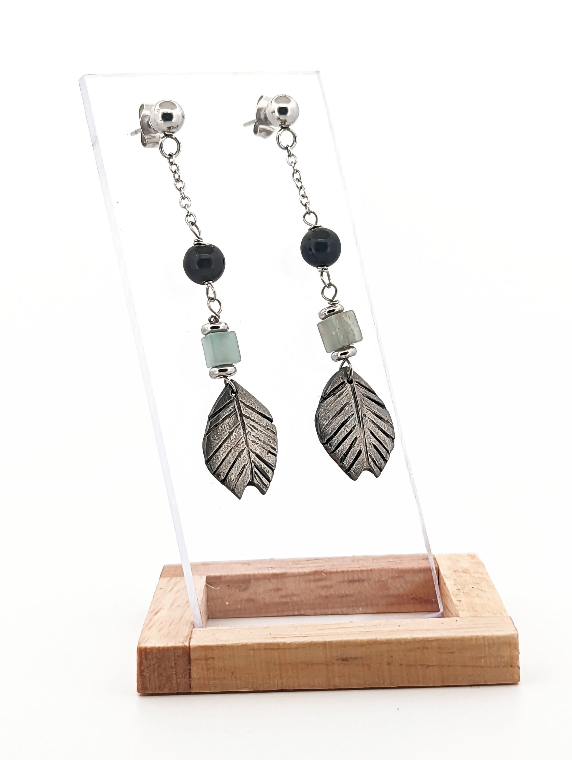 Boucles d’oreilles artisanales « Nature » en acier inoxydable – Amazonite et Obsidienne
