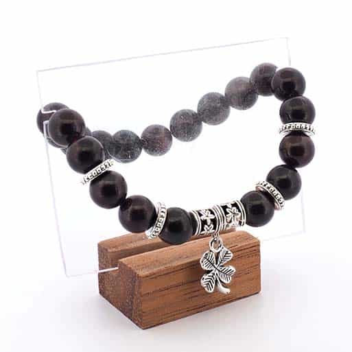 Grenat et Hématite pour l’ancrage et la force intérieure ; Grenat et Quartz fumé pour la stabilité émotionnelle.